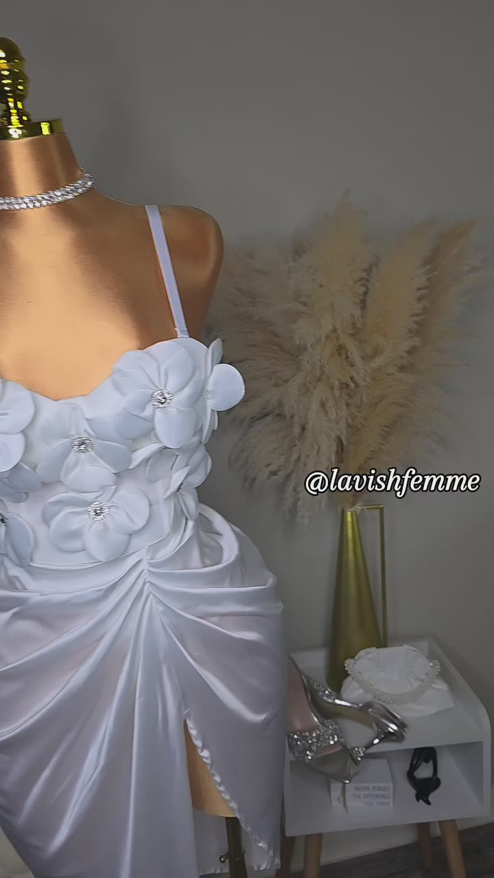 Ciara 3-D Flowers Dress (Ivory)