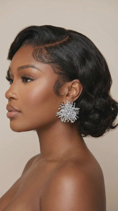 Make a statement with the Crystal Radiance Earrings. Designed with a bold starburst silhouette and radiant crystal detailing, these earrings catch the light beautifully and instantly elevate any look. Available in gold and silver, they’re lightweight, comfortable, and made to shine for every special moment.