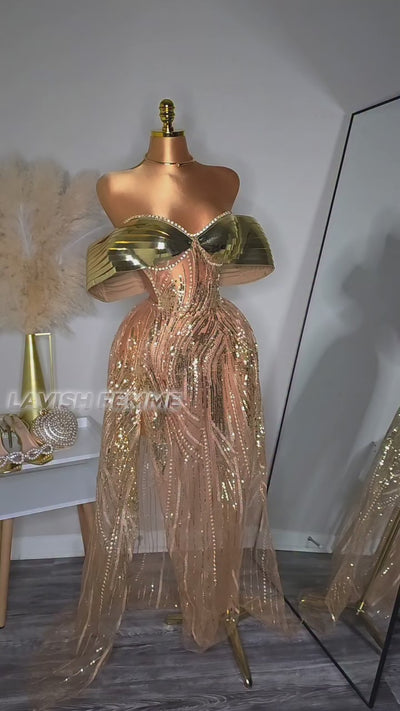 Step into the spotlight in our Golden Charm Dress – the ultimate luxe statement piece for your next special occasion. Crafted with shimmering sequins that catch the light from every angle, this dress was made for grand entrances, unforgettable photos, and compliment after compliment.