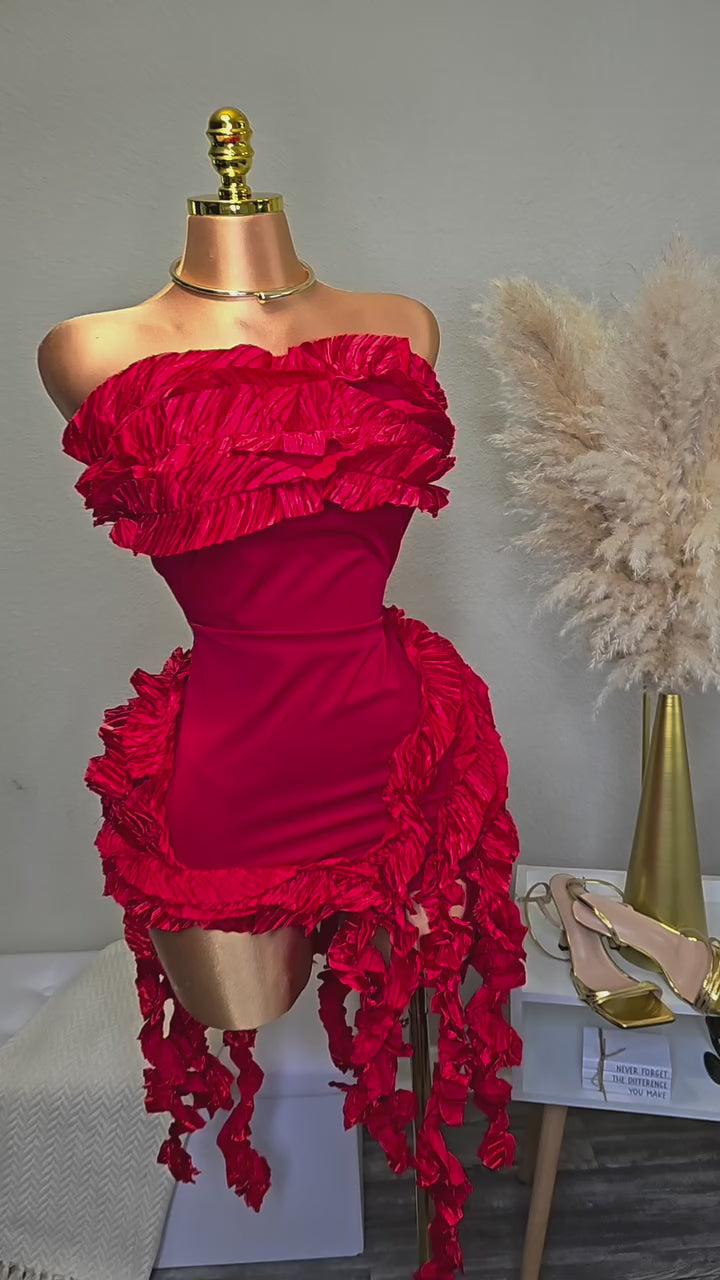 Turn heads and steal hearts in the Ruby Ruffle Dress — this dress is a flirty, feminine statement piece that’s perfect for date nights, parties, or whenever you want to feel unforgettable.